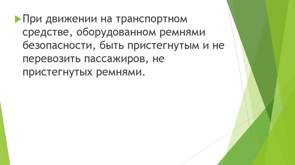 При движении на транспортномсредстве, оборудованном ремнями