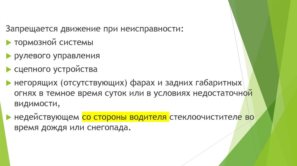 Запрещается движение при неисправности:тормозной системы