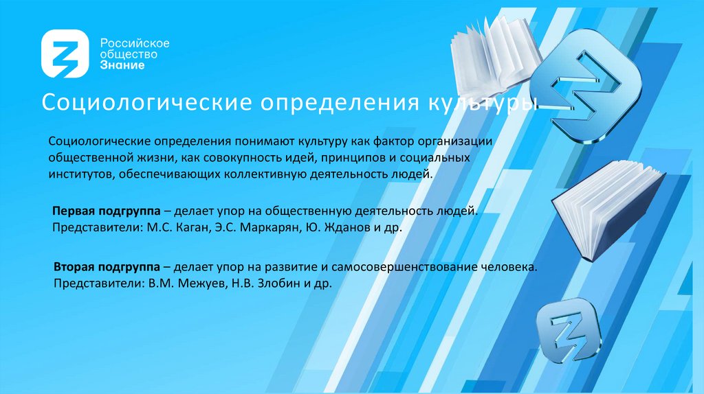 Социологические определения культурыСоциологические определения понимают культуру как фактор организации