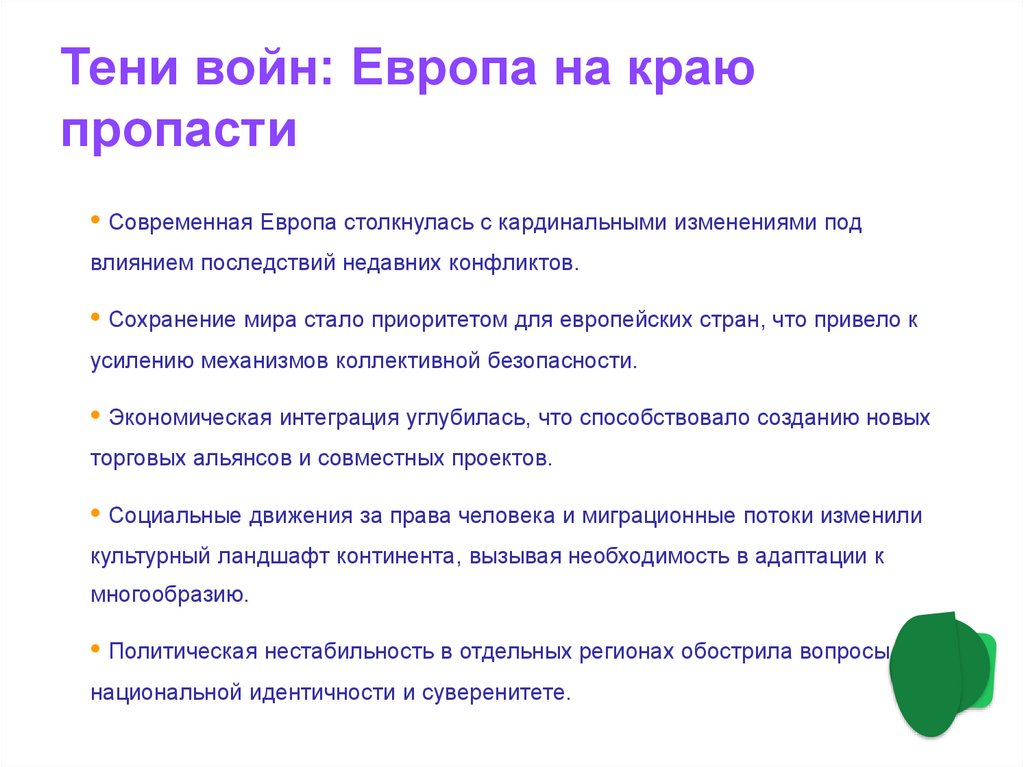 • Сохранение мира стало приоритетом для европейских стран, что привело к