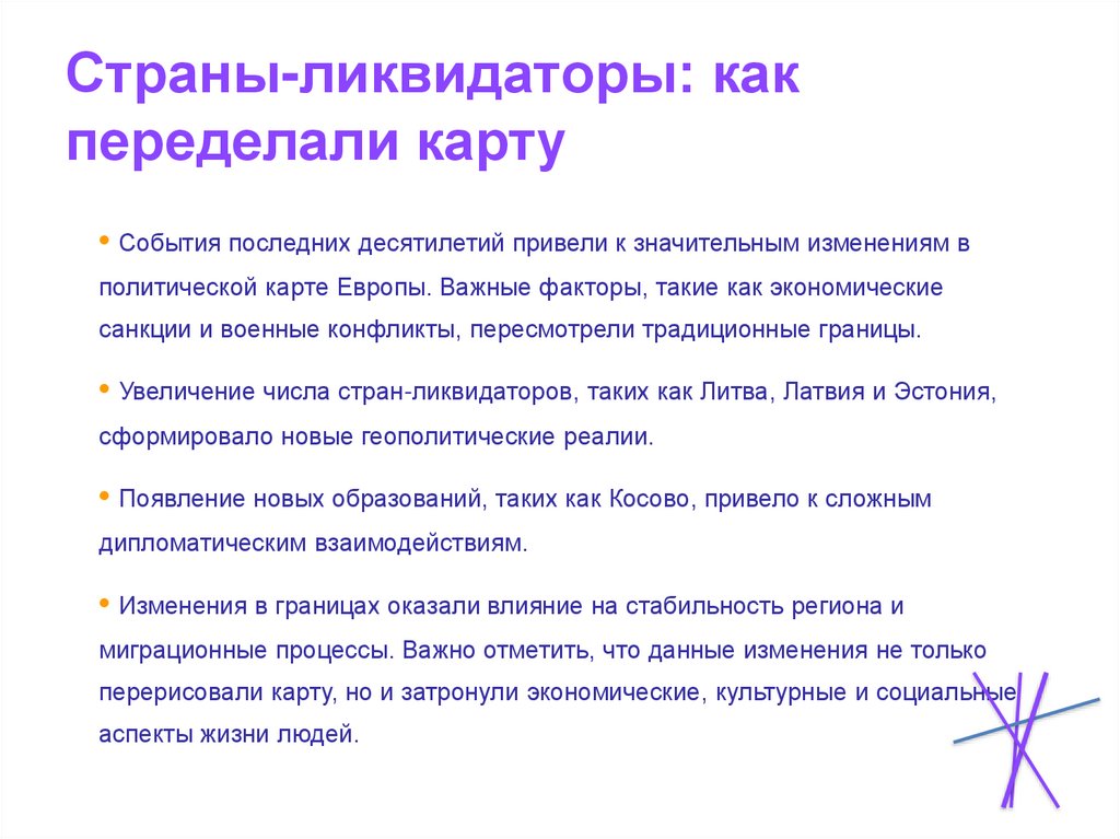 • Увеличение числа стран-ликвидаторов, таких как Литва, Латвия и Эстония,
