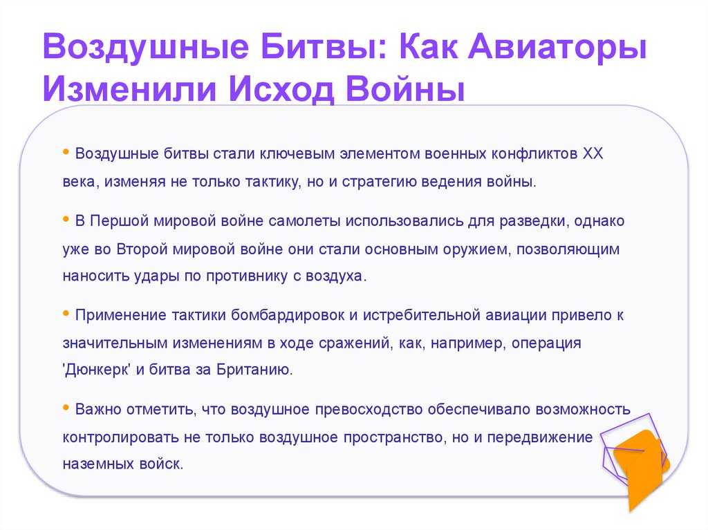 • Воздушные битвы стали ключевым элементом военных конфликтов XX