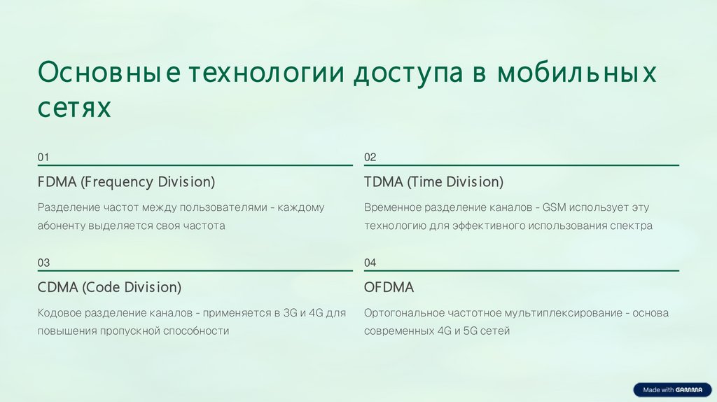 Основ ны е технол огии дост упа в мобил ь ны хсетях