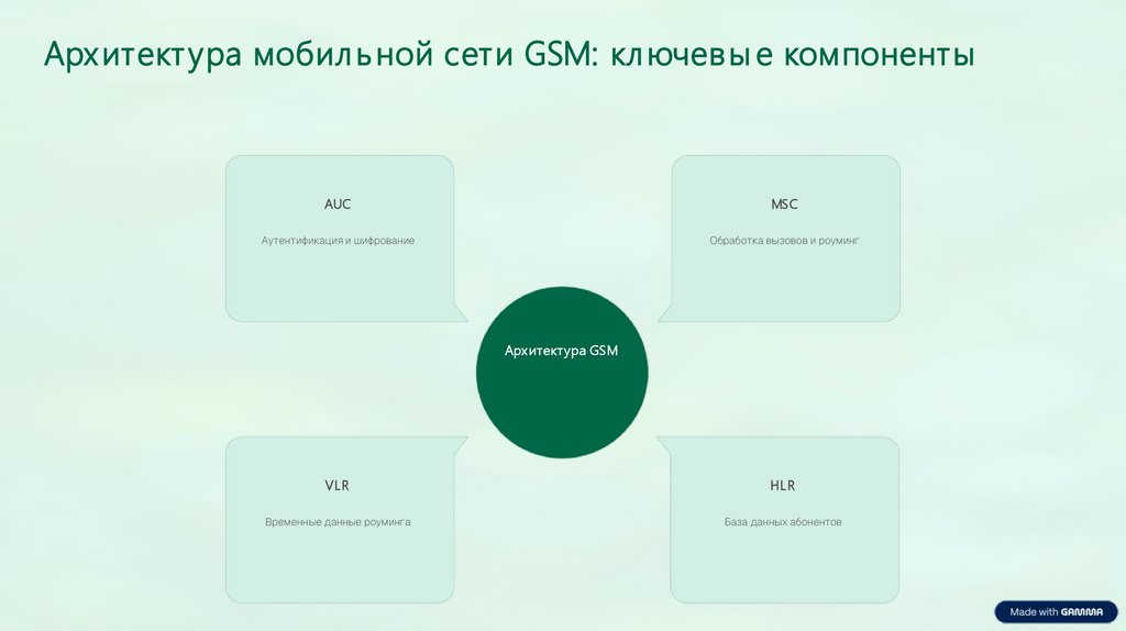 Арх итект ура мобил ь ной сети GSM: кл ючев ы е компонентыAUC