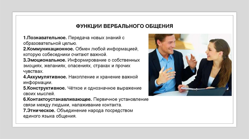 ФУНКЦИИ ВЕРБАЛЬНОГО ОБЩЕНИЯ1.Познавательное. Передача новых знаний с