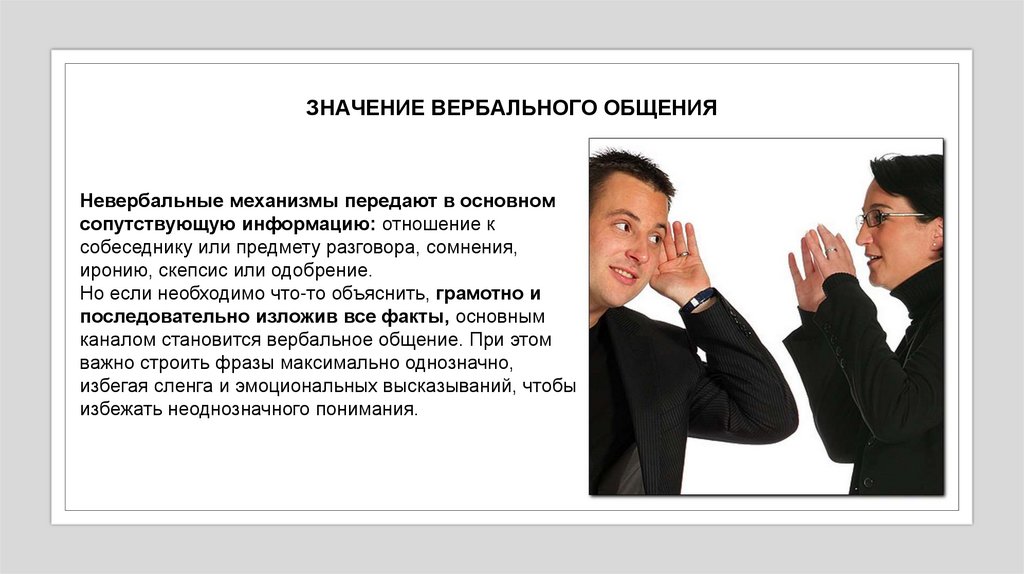 ЗНАЧЕНИЕ ВЕРБАЛЬНОГО ОБЩЕНИЯНевербальные механизмы передают в основном
