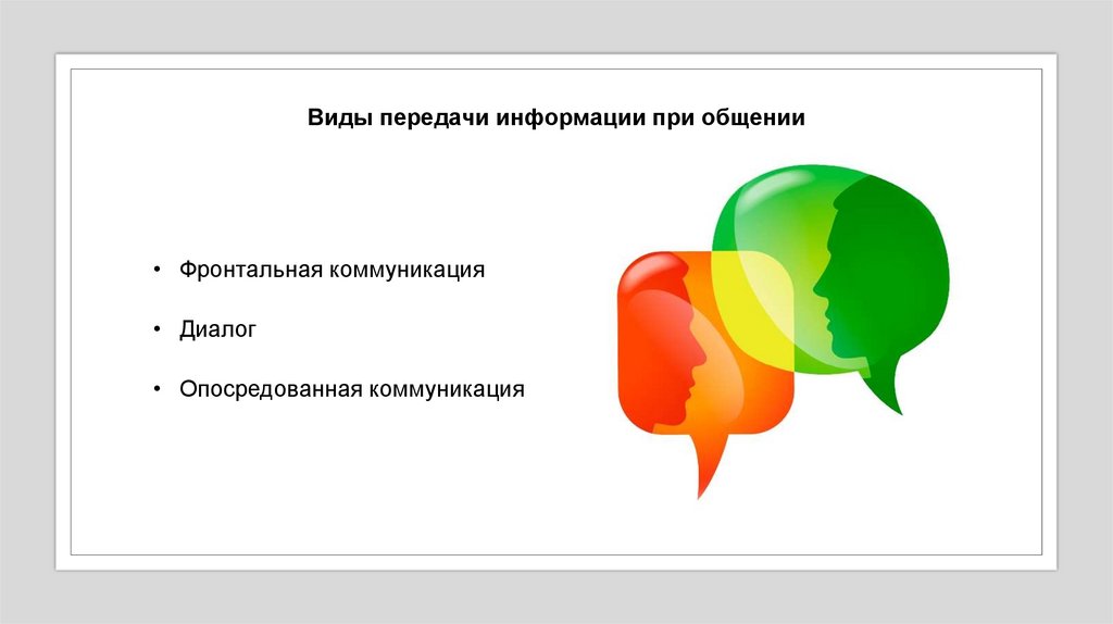 Виды передачи информации при общении• Фронтальная коммуникация