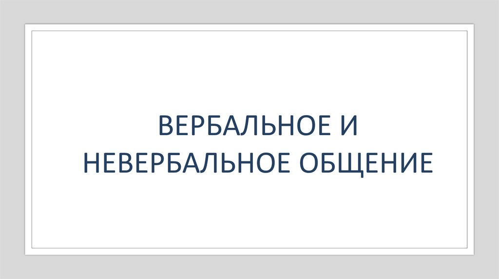 ВЕРБАЛЬНОЕ ИНЕВЕРБАЛЬНОЕ ОБЩЕНИЕ