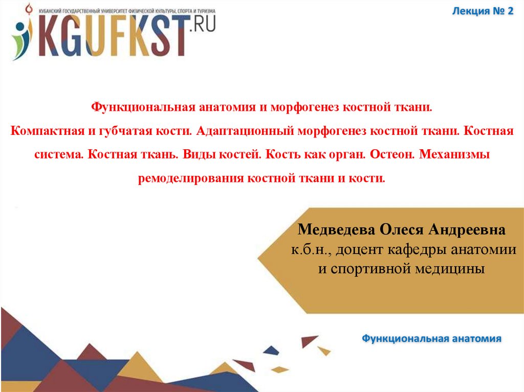 Лекция № 2Функциональная анатомия и морфогенез костной ткани.