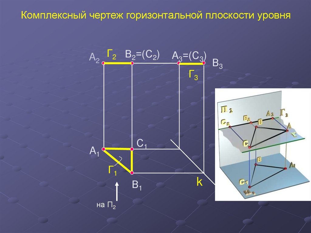 Комплексный чертеж горизонтальной плоскости уровняA2 Г2 В2=(С2)
