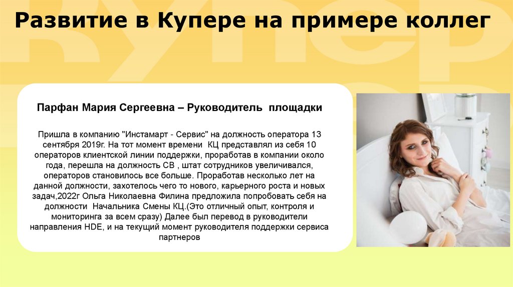 Развитие в Купере на примере коллегПарфан Мария Сергеевна – Руководитель площадки