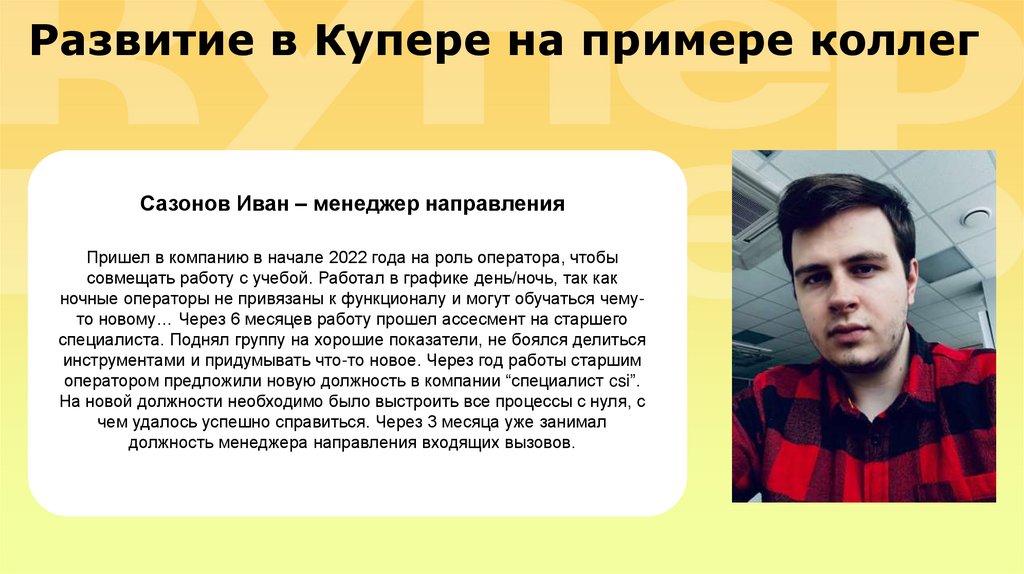 Развитие в Купере на примере коллегСазонов Иван – менеджер направления