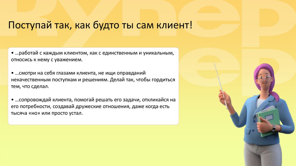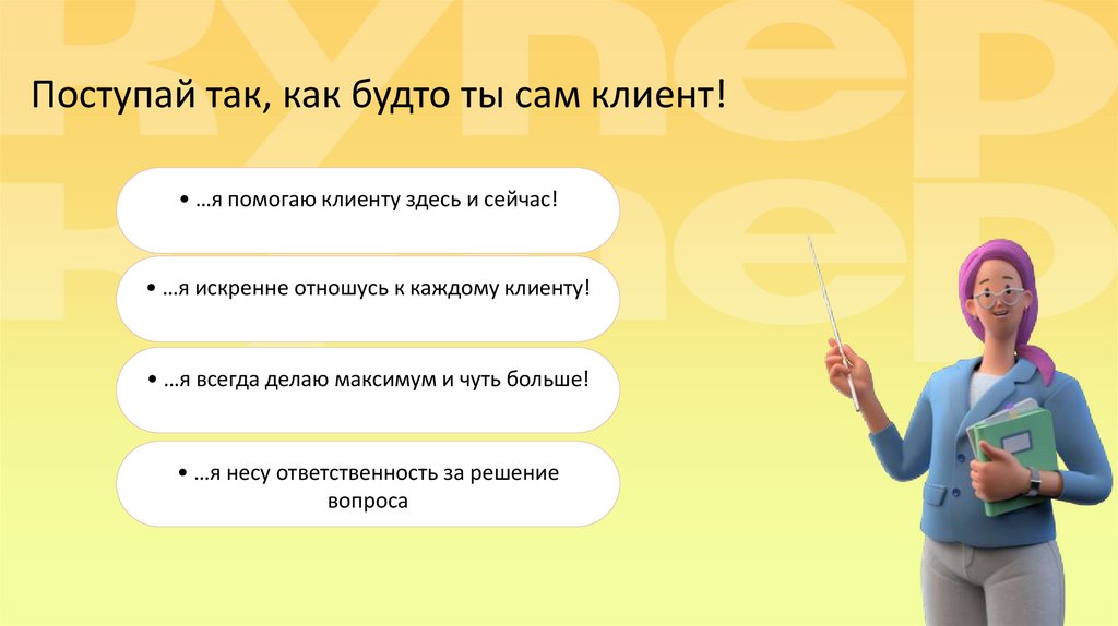 Поступай так, как будто ты сам клиент!• …я помогаю клиенту здесь и сейчас!
