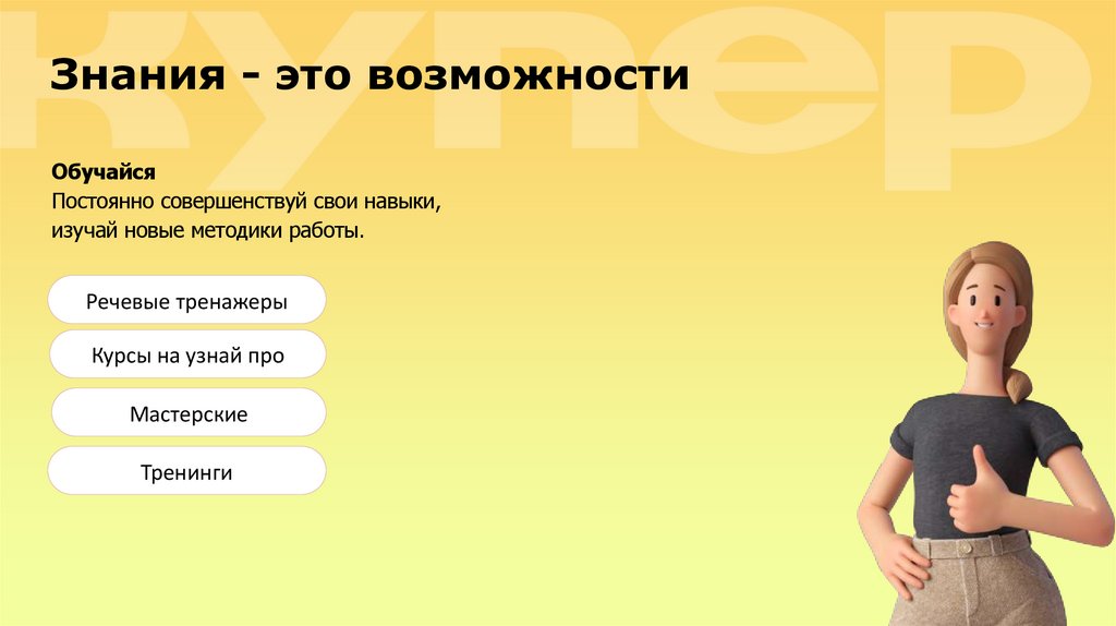 помощи коллег, своих руководителей, при помощи тренингов, которые