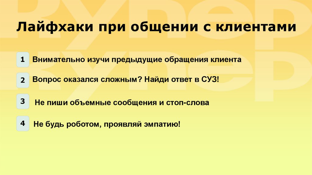 • …сопровождай клиента, помогай решать его задачи, откликайся на