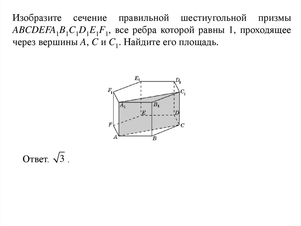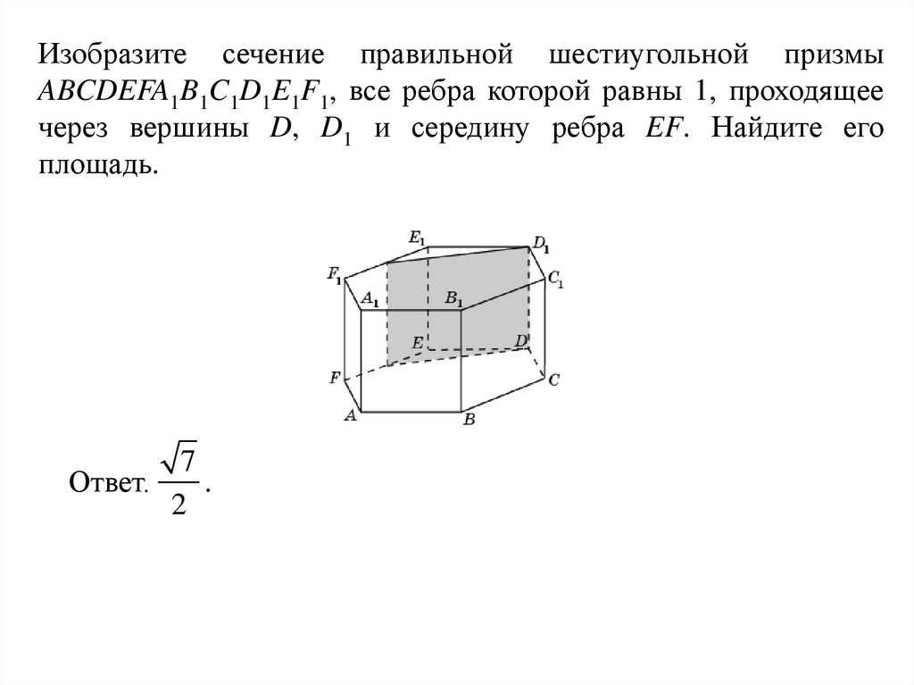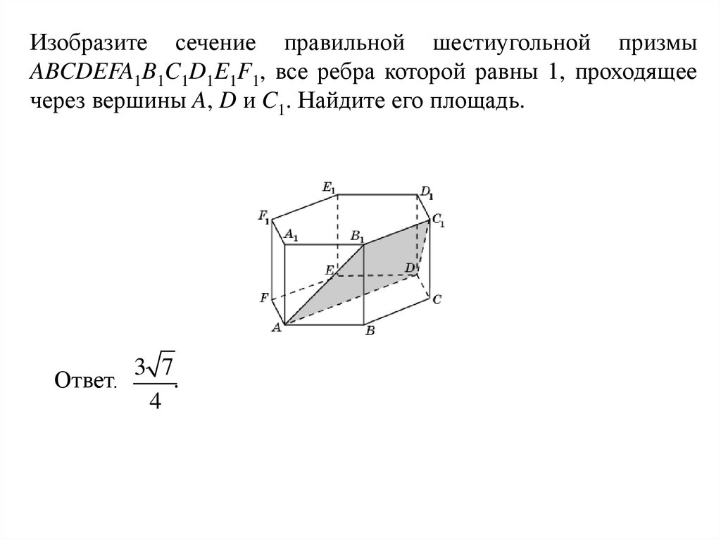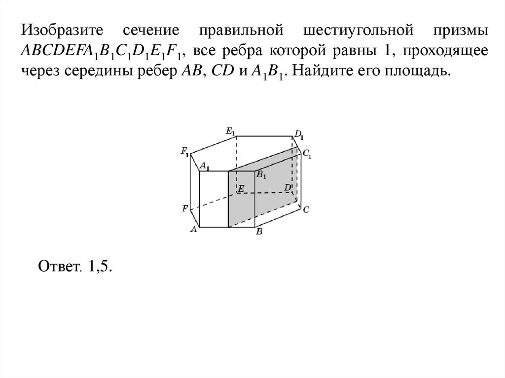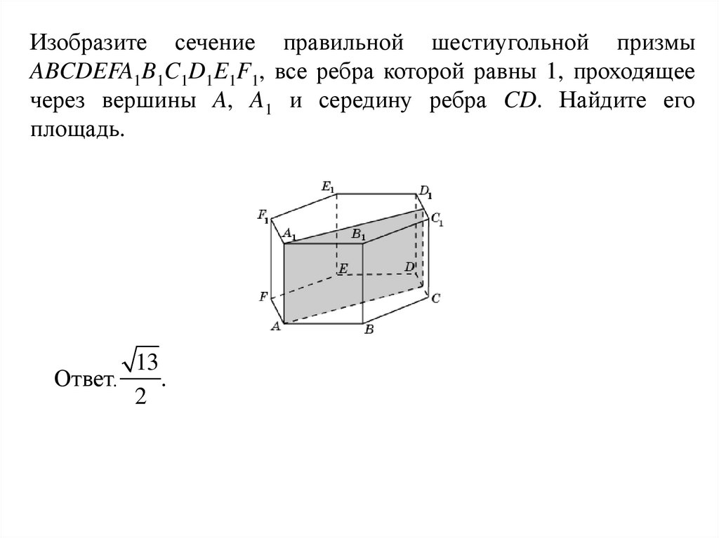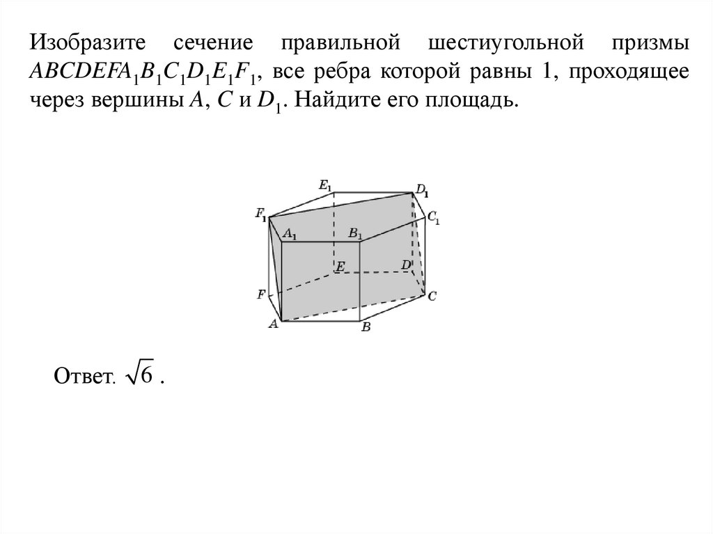 Изобразите сечение правильной шестиугольной призмыABCDEFA1B1C1D1E1F1, все ребра которой равны 1, проходящее