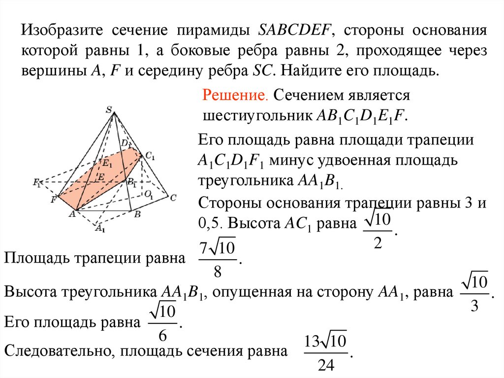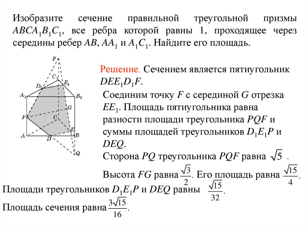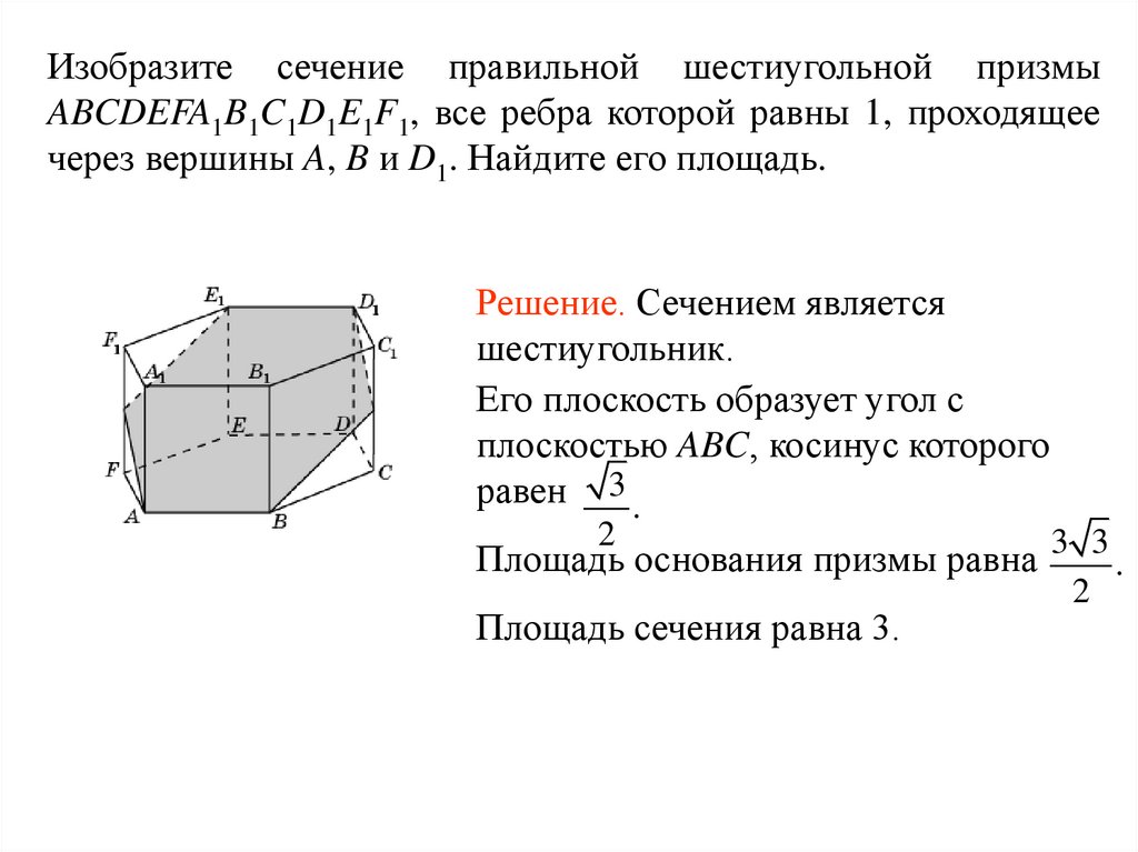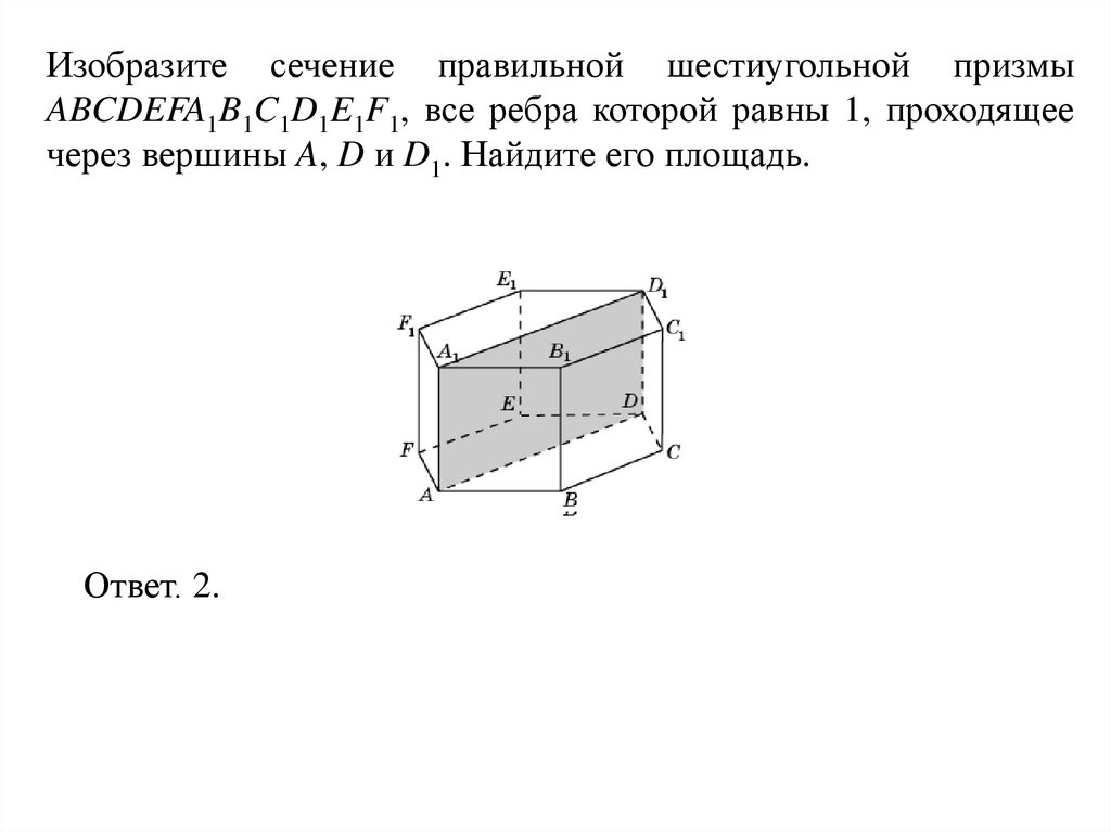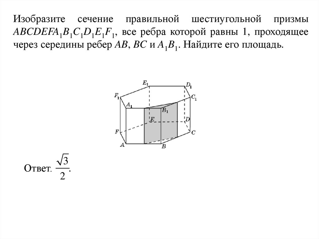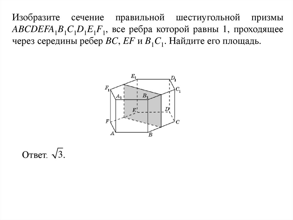 Изобразите сечение правильной шестиугольной призмыABCDEFA1B1C1D1E1F1, все ребра которой равны 1, проходящее