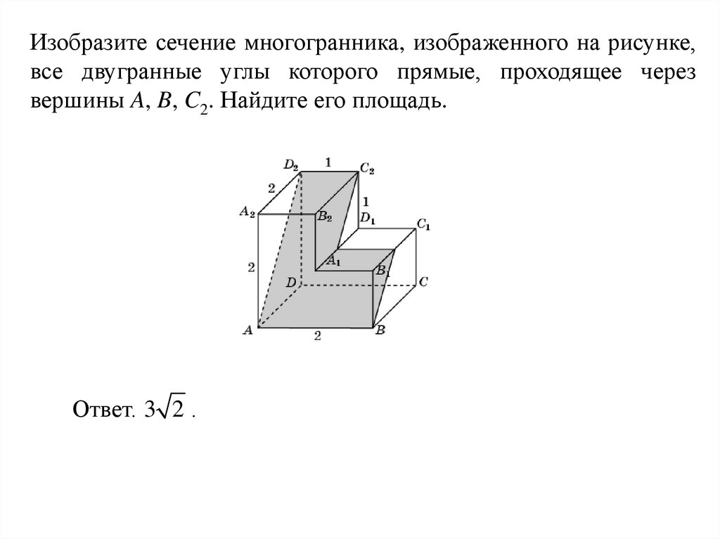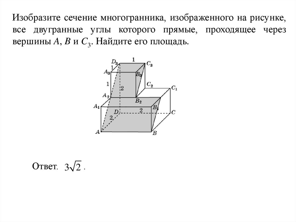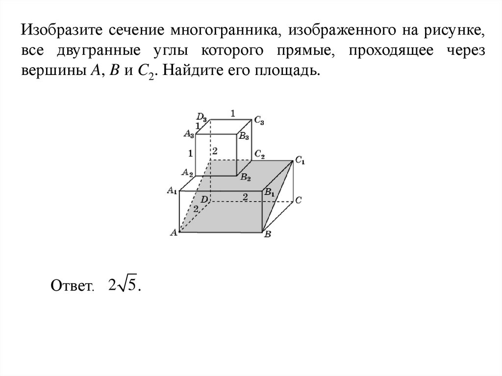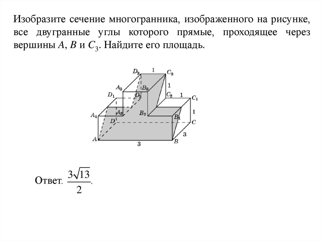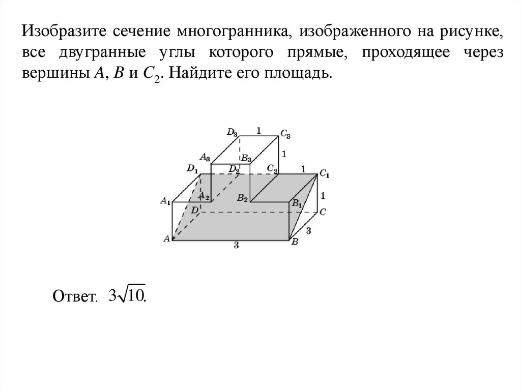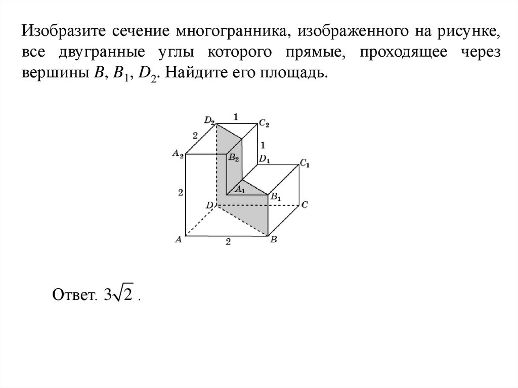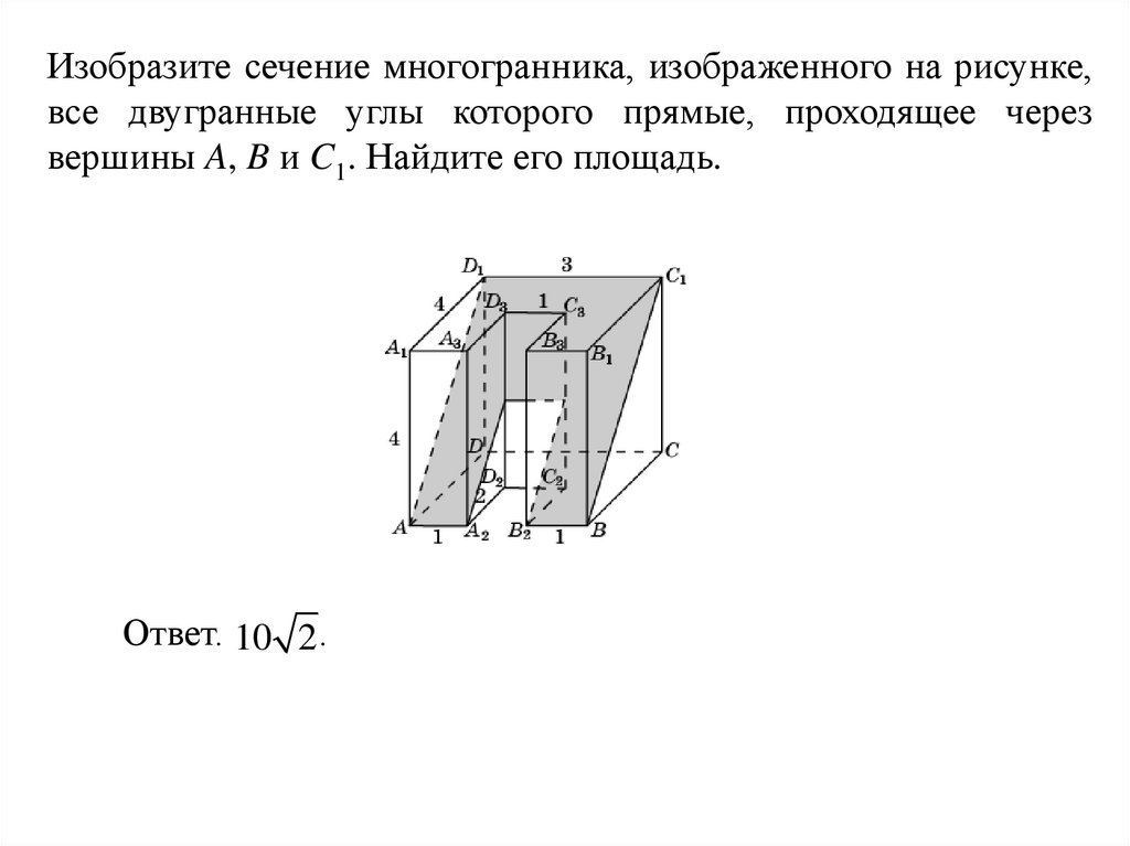 Изобразите сечение многогранника, изображенного на рисунке,все двугранные углы которого прямые, проходящее через