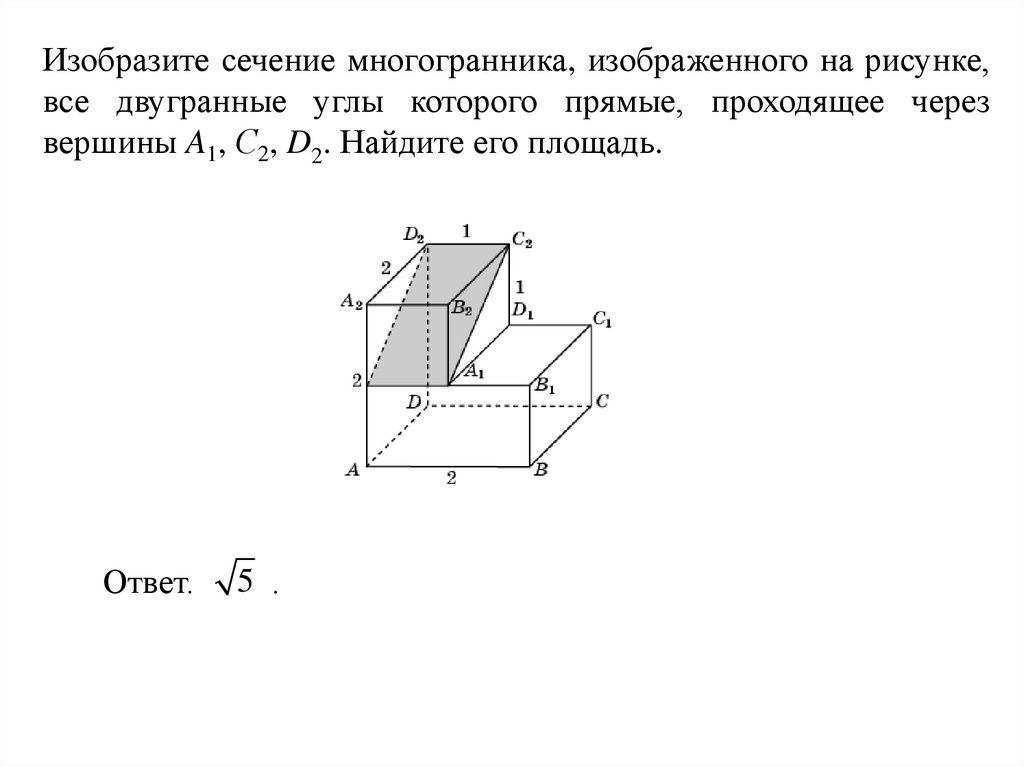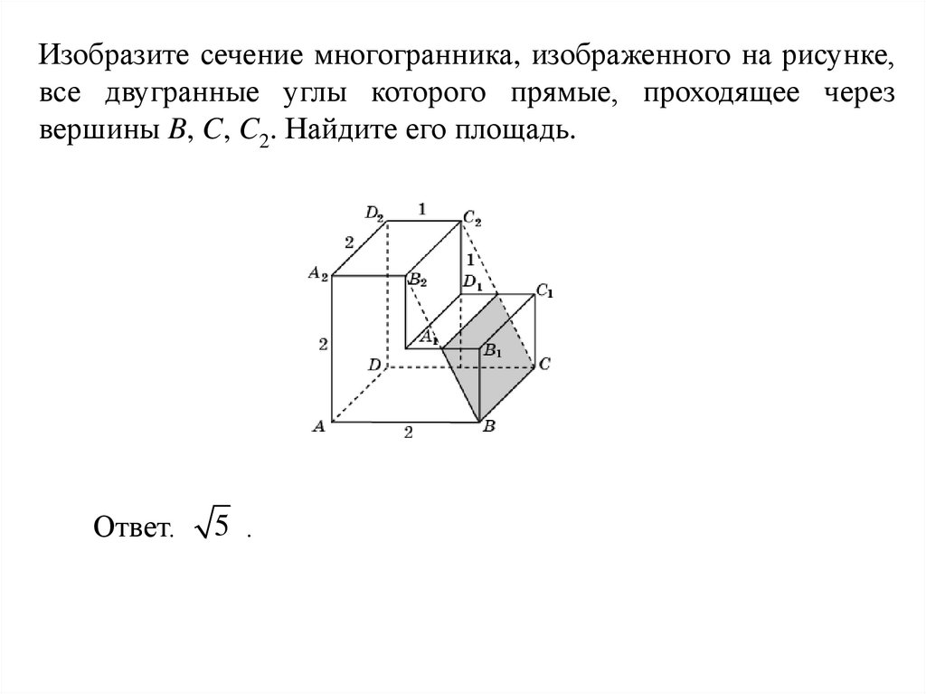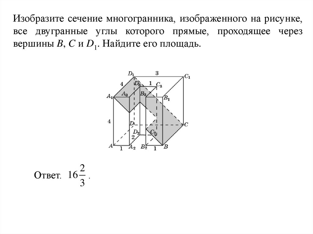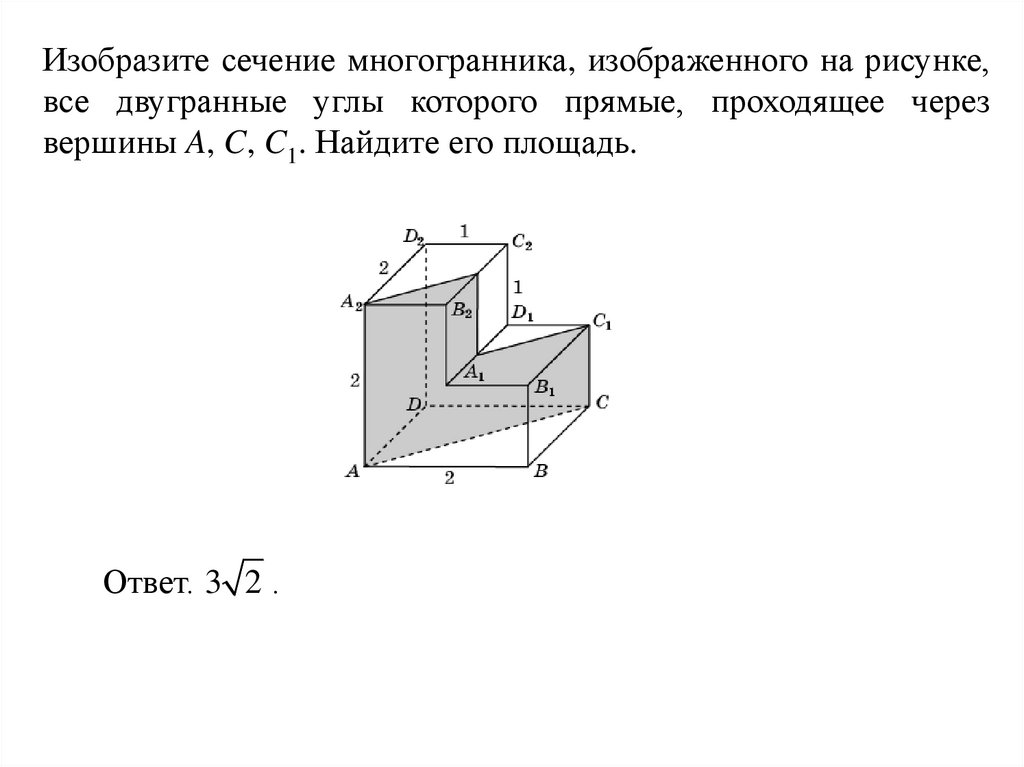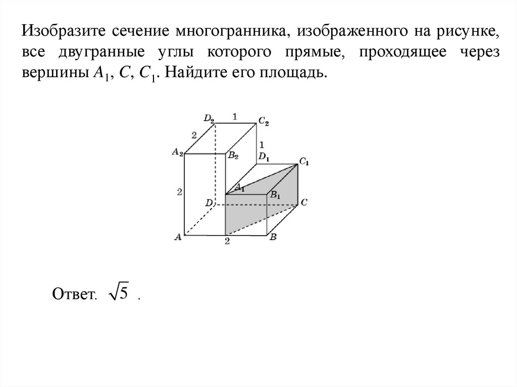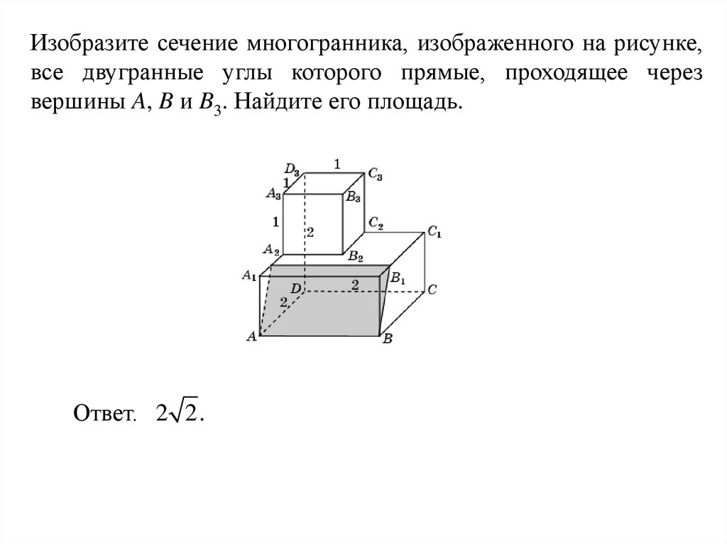Изобразите сечение многогранника, изображенного на рисунке,все двугранные углы которого прямые, проходящее через