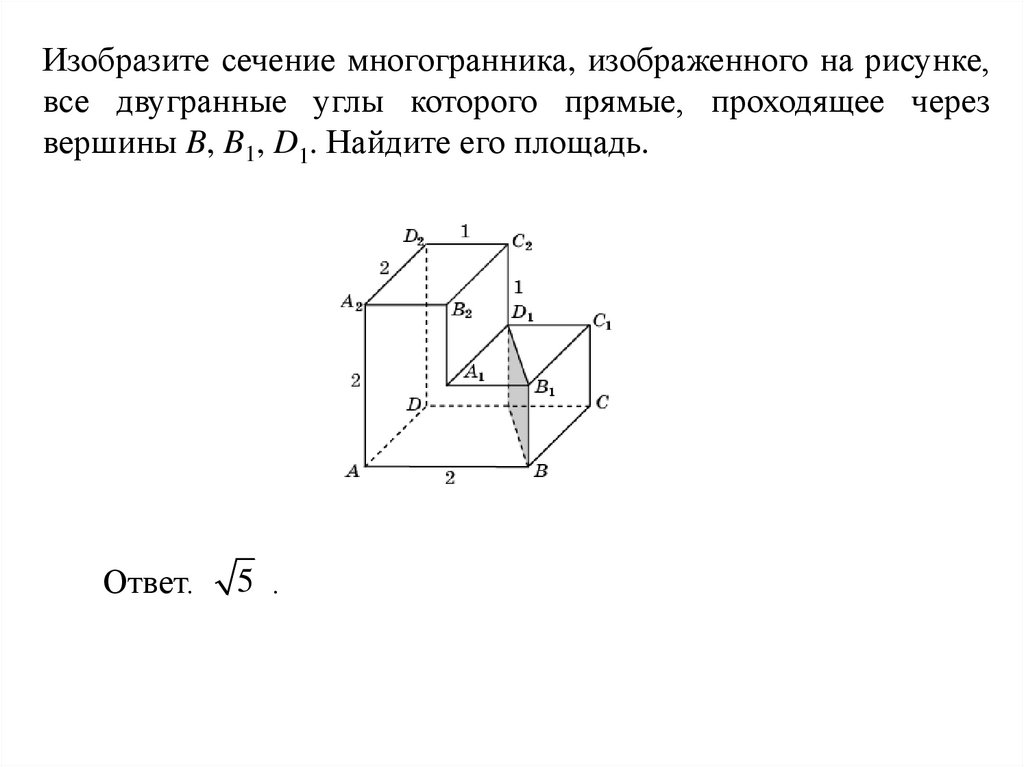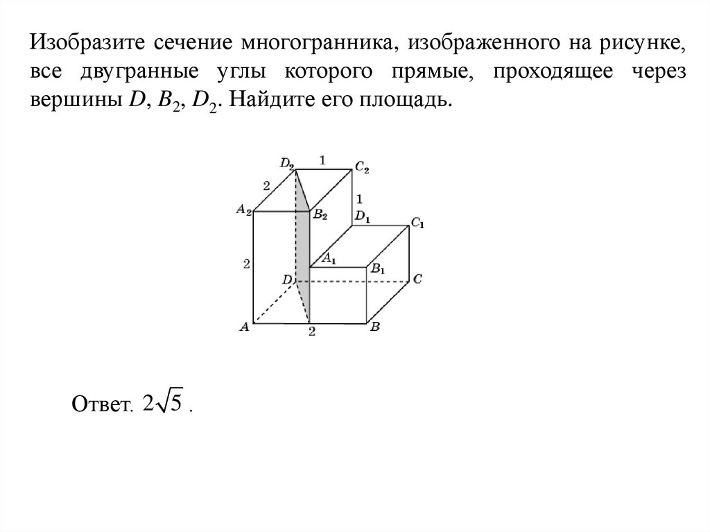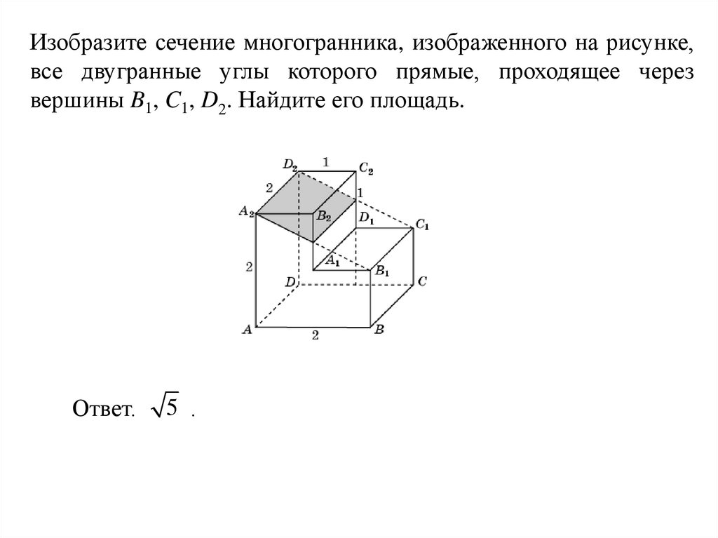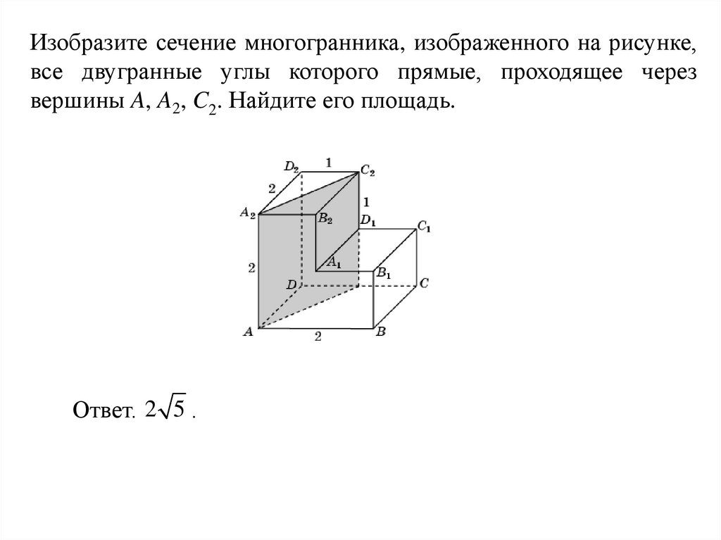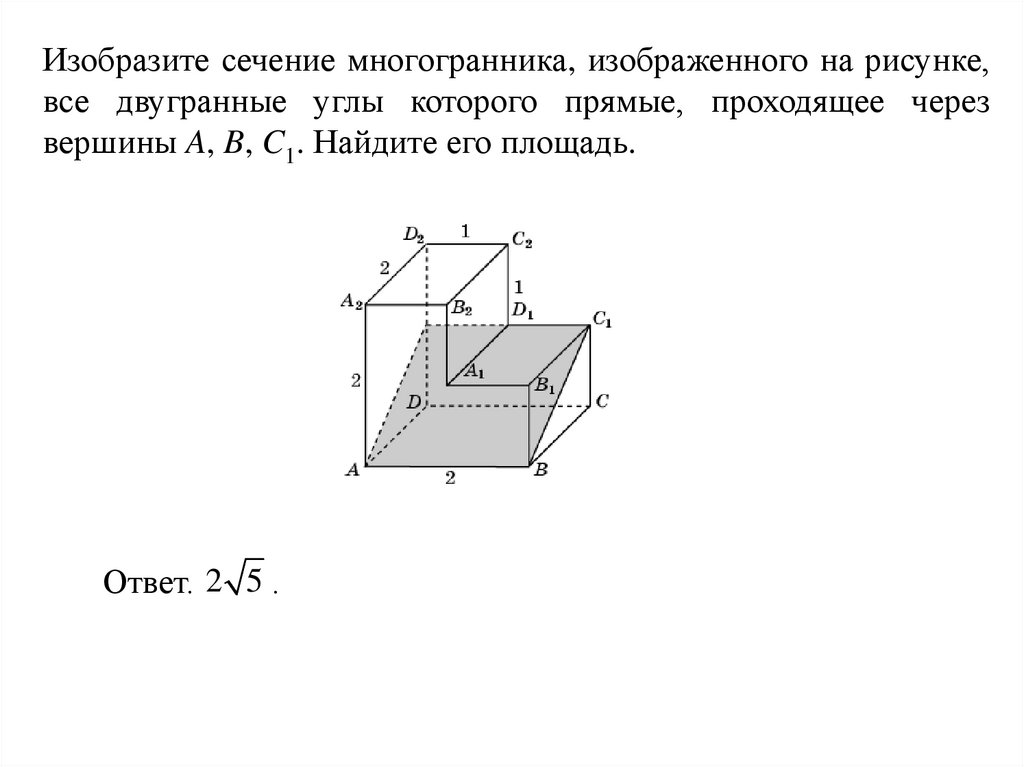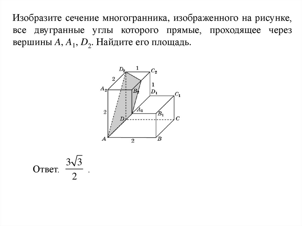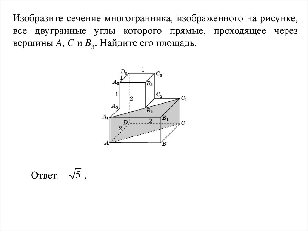 Изобразите сечение многогранника, изображенного на рисунке,все двугранные углы которого прямые, проходящее через