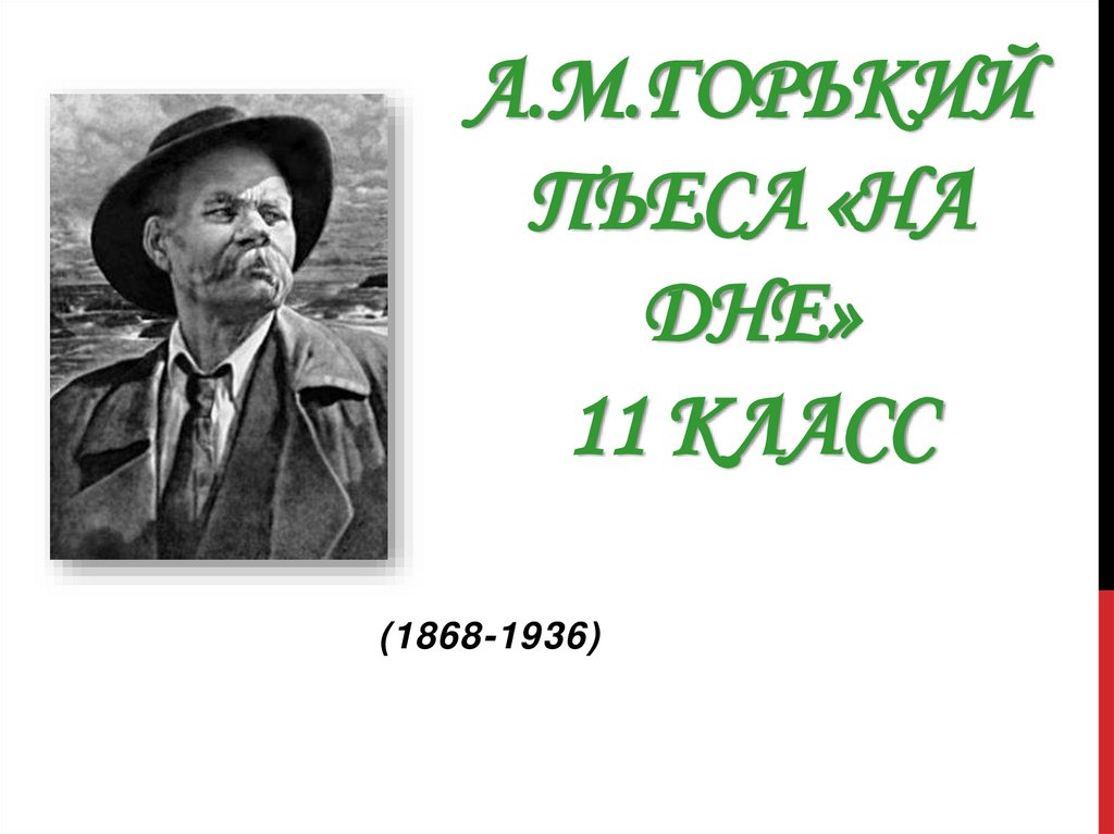 1. А.М.Горький Пьеса «На дне» 11 класс