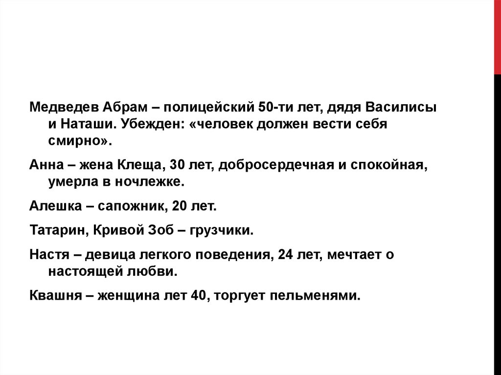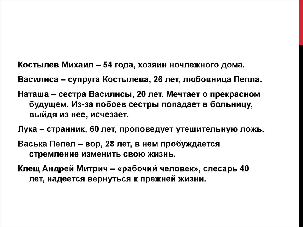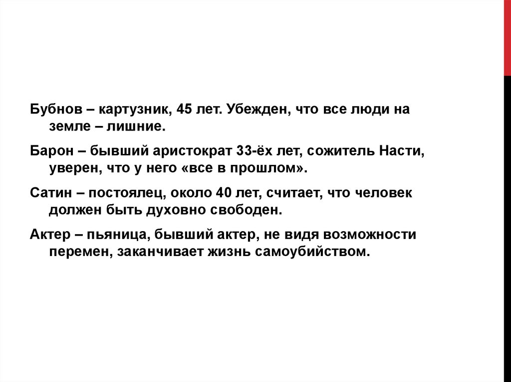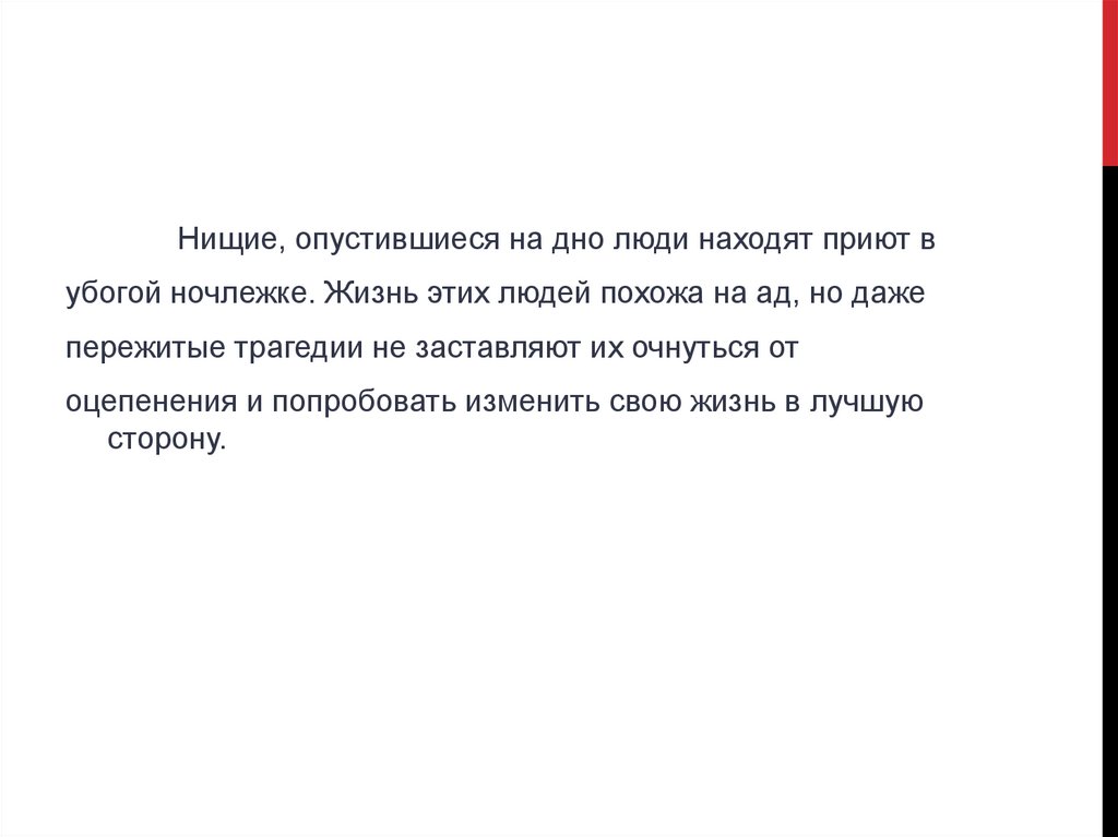 героев, обитателей ночлежки.