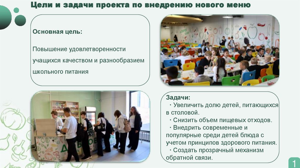 Цели и задачи проекта по внедрению нового менюОсновная цель: