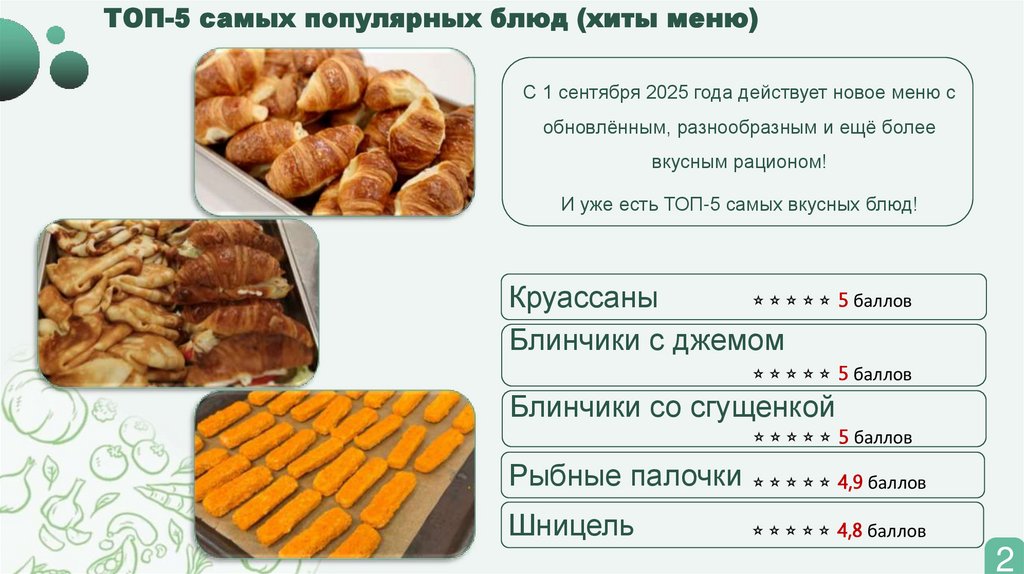 ТОП-5 самых популярных блюд (хиты меню)С 1 сентября 2025 года действует новое меню с
