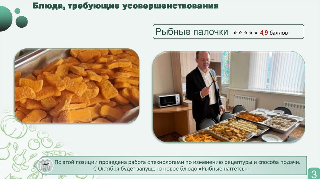 По этой позиции проведена работа с технологами по изменению рецептуры и способа подачи.