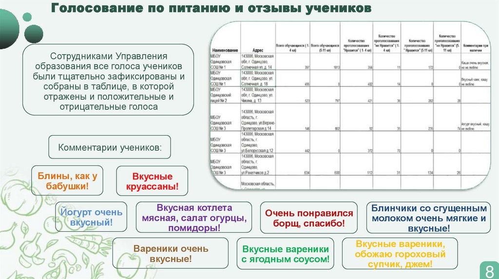 Анализ обратной связи от учащихся на новое меню в школьных столовых