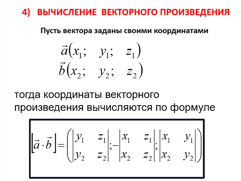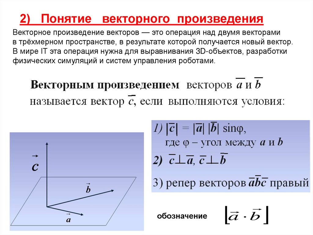 2) Понятие векторного произведенияВекторное произведение векторов — это операция над двумя векторами