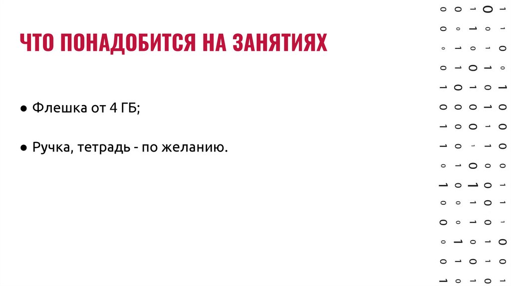 ЧТО ПОНАДОБИТСЯ НА ЗАНЯТИЯХ● Флешка от 4 ГБ;