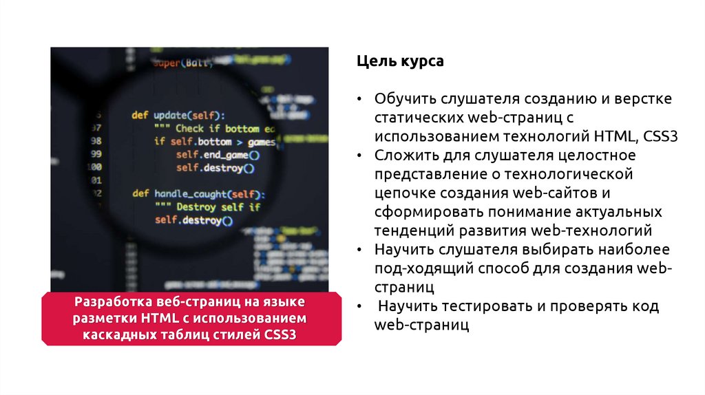 • Разработка веб-страниц на языке разметки HTML сиспользованием каскадных таблиц стилей CSS3