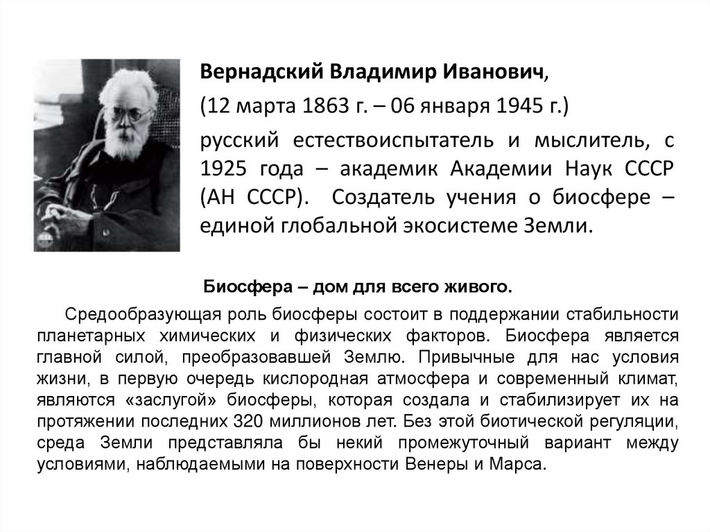 (АН СССР). Создатель учения о биосфере –