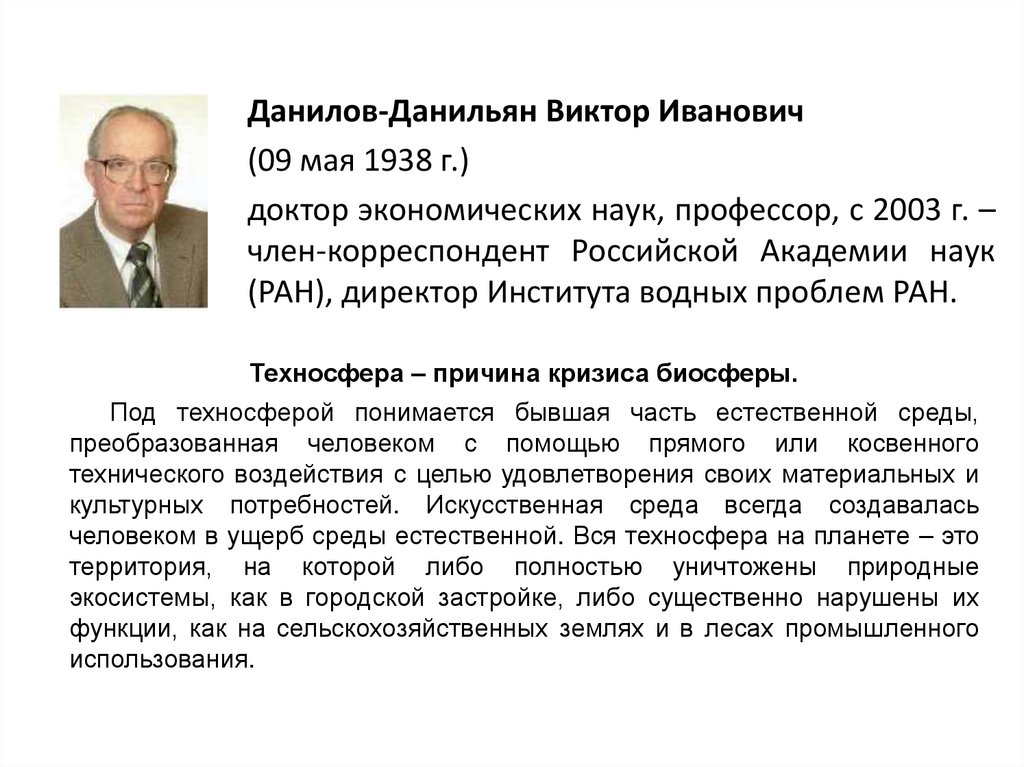 Техносфера – причина кризиса биосферы.
