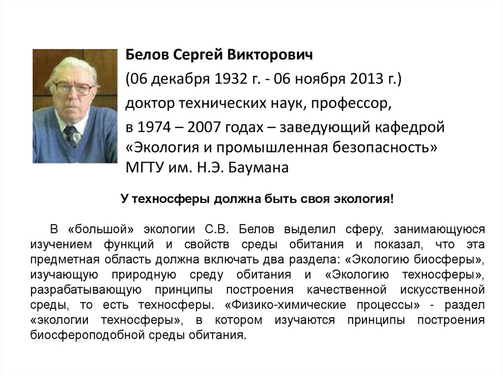 «экологии техносферы», в котором изучаются принципы построения
