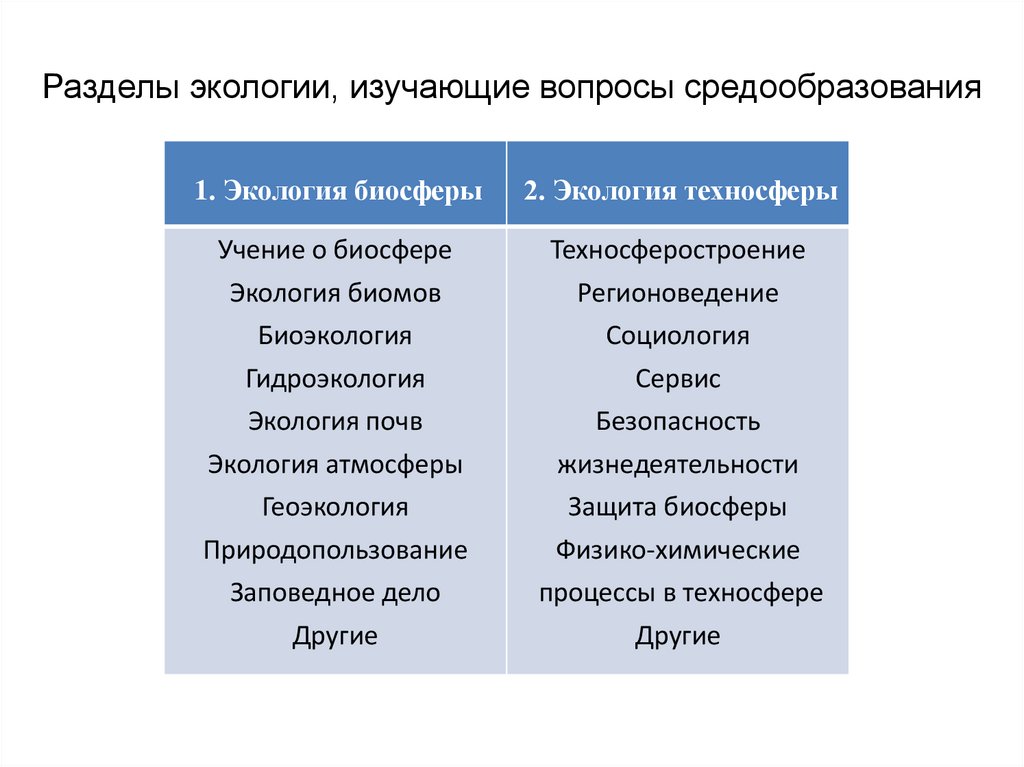 Разделы экологии, изучающие вопросы средообразования1. Экология биосферы