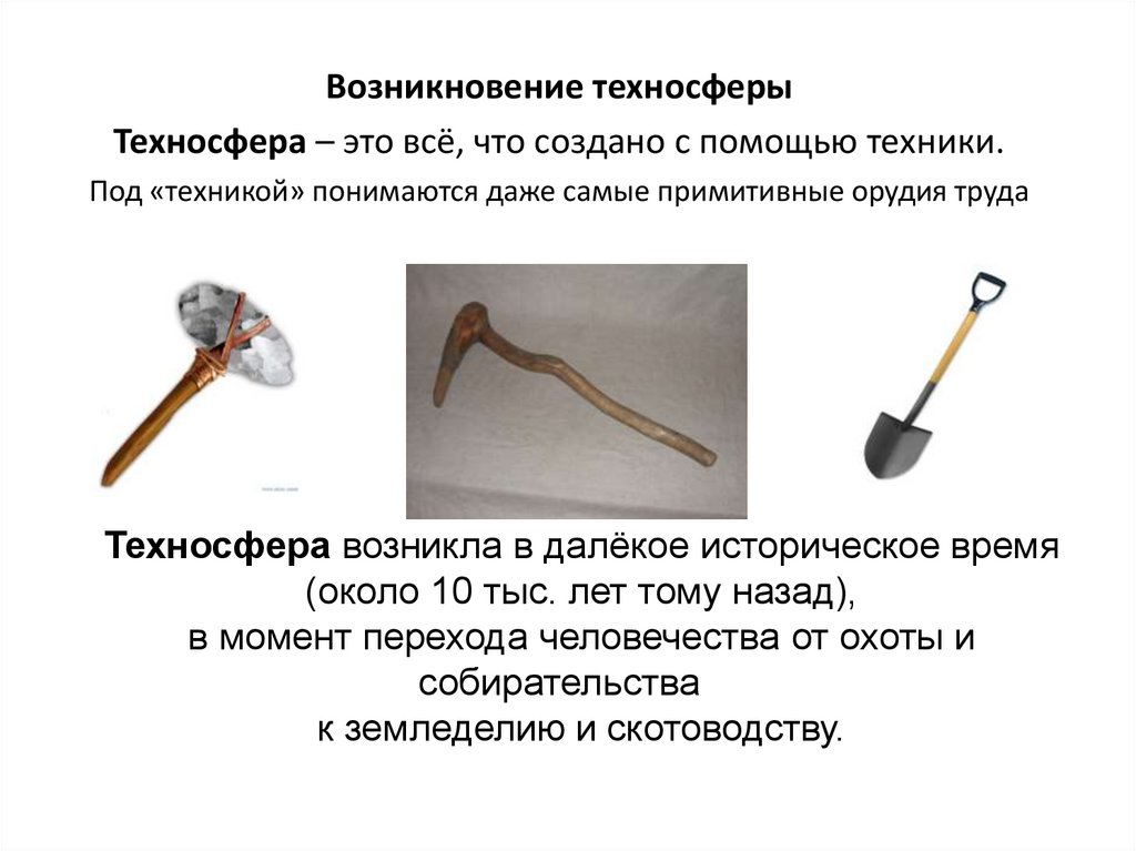 Возникновение техносферыТехносфера – это всё, что создано с помощью техники.
