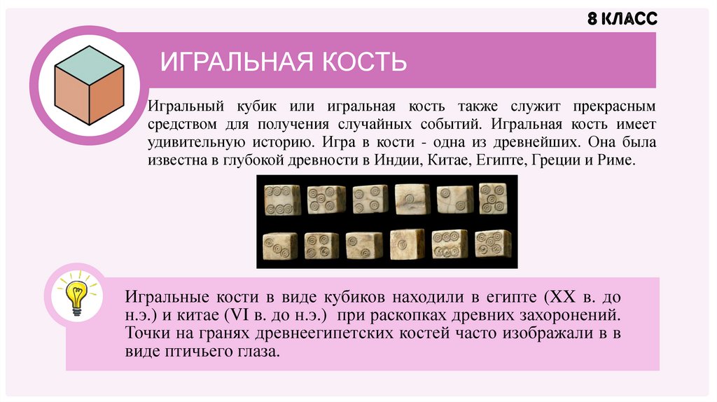 Игральные кости в виде кубиков находили в египте (XX в. до