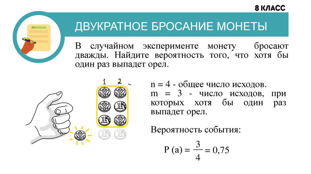 8 классДВУКРАТНОЕ БРОСАНИЕ МОНЕТЫ