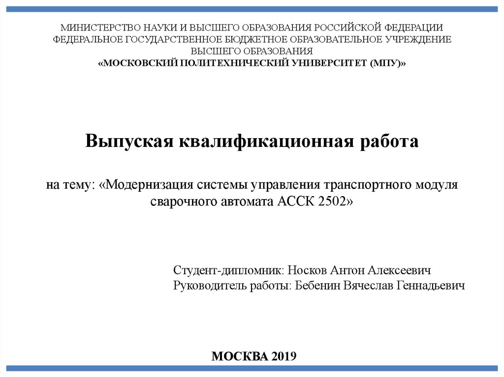 управления транспортного модуля на сварочном автомате АССК 2502. Все