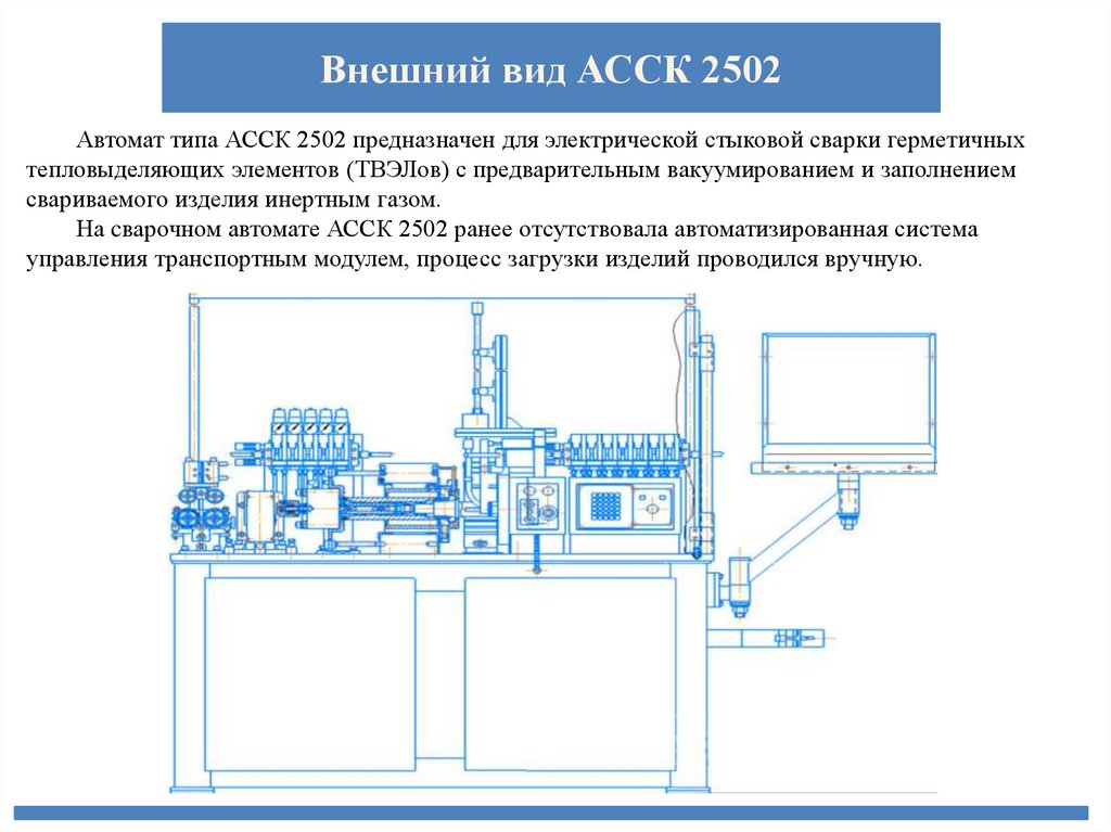 Внешний вид АССК 2502Автомат типа АССК 2502 предназначен для электрической стыковой сварки герметичных