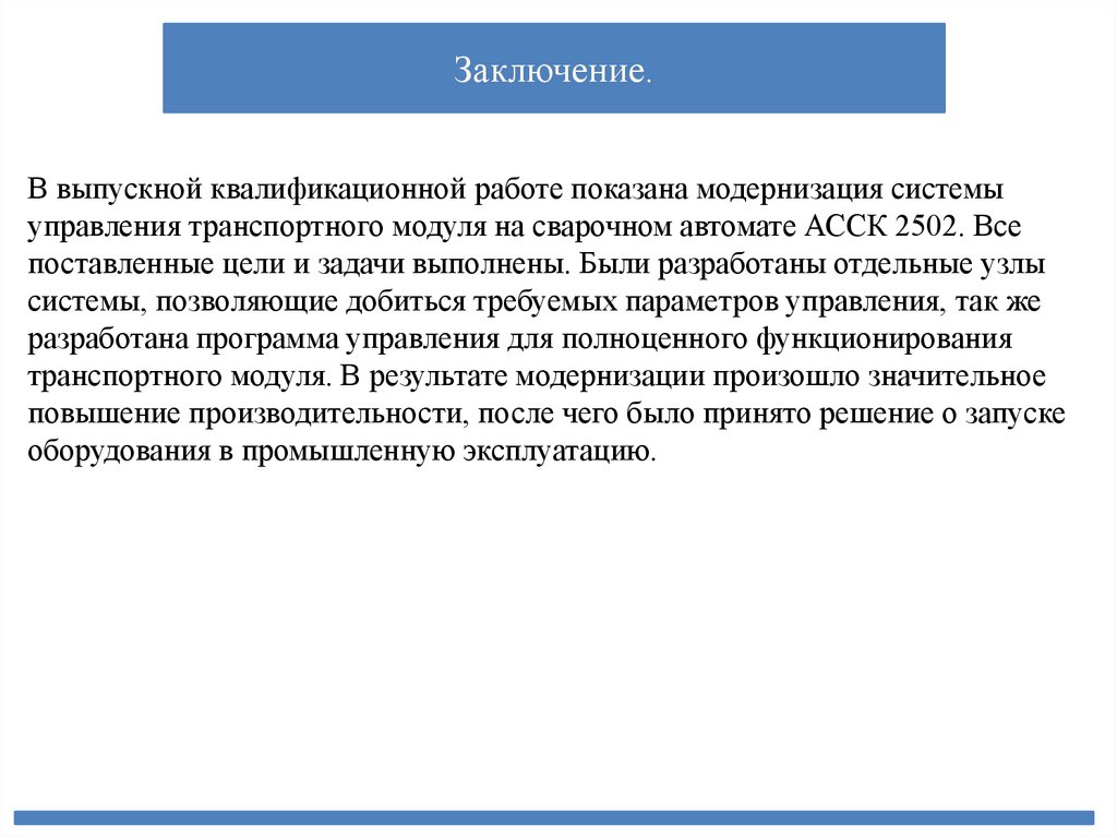Заключение.В выпускной квалификационной работе показана модернизация системы