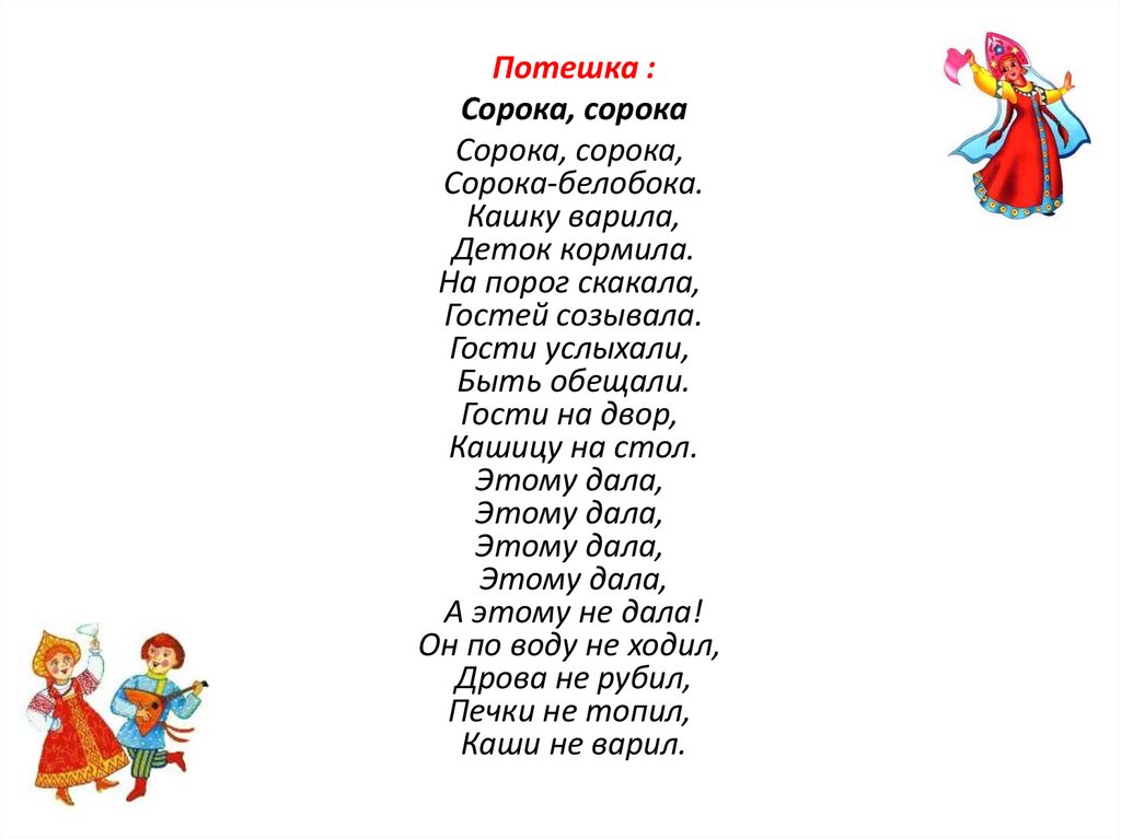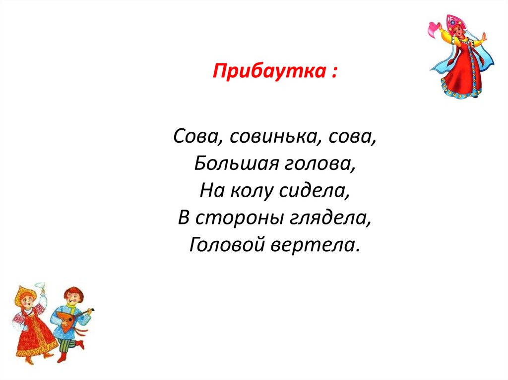11. Прибаутка – стихотворение, похожее на короткую сказку, которое рассказывает нянюшка или мама своему ребенку.