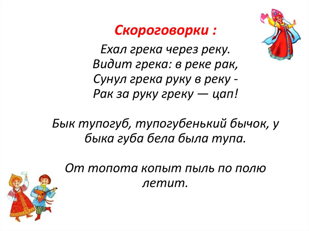 21. Скороговорка – стихотворение, в котором специально собраны труднопроизносимые слова.