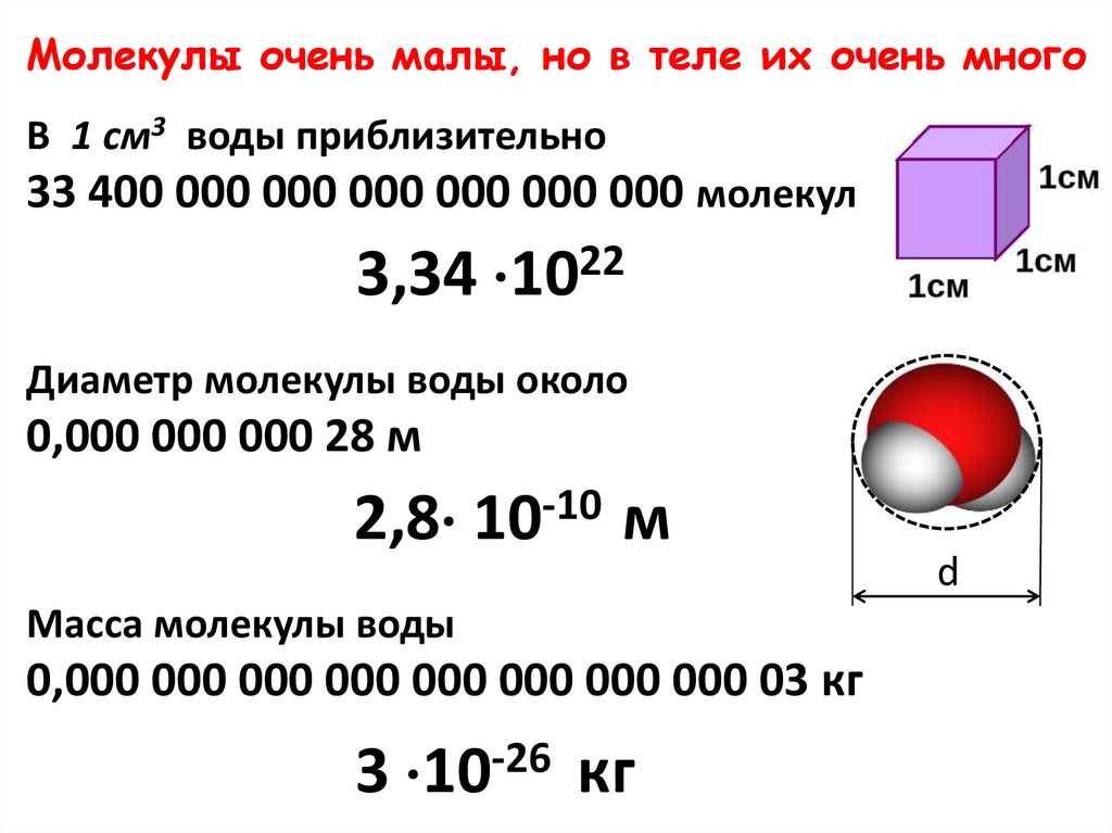 Молекулы очень малы, но в теле их очень многоВ 1 см3 воды приблизительно