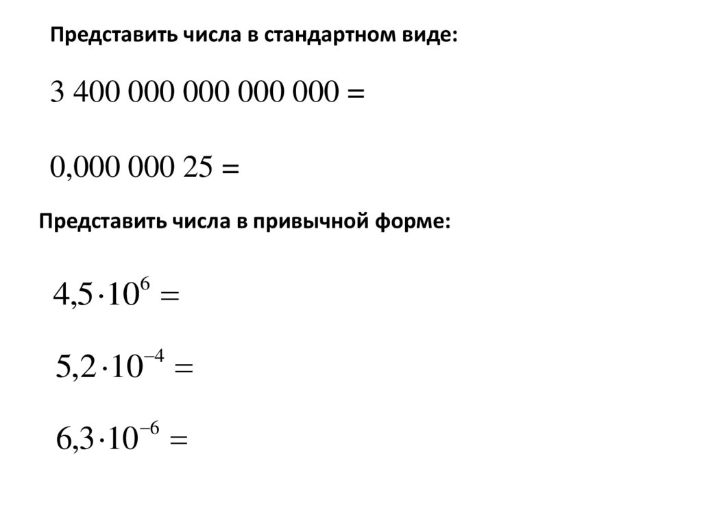 Представить числа в стандартном виде:3 400 000 000 000 000 =