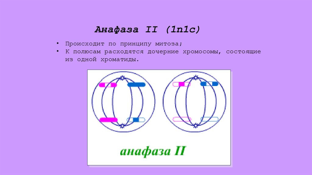 Анафаза II (1n1c)• Происходит по принципу митоза;