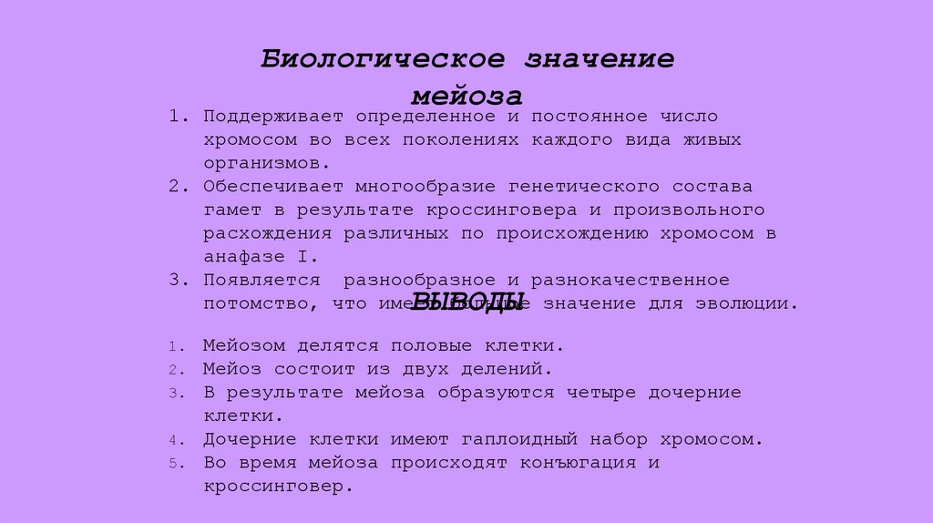 Мейоз – особый вид деления клетки, при котором числохромосом в дочерних клетках становится