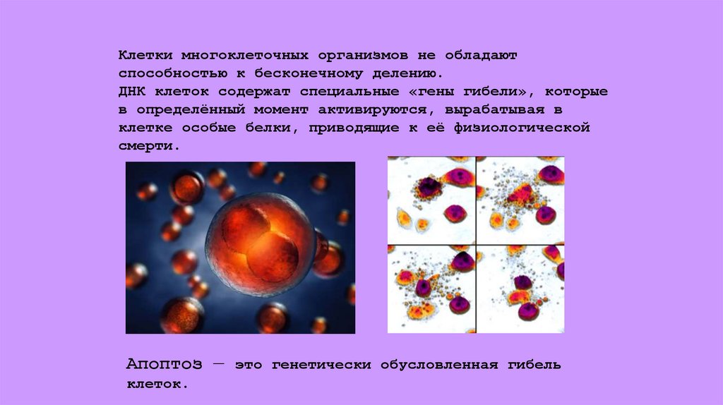 Клетки многоклеточных организмов не обладаютспособностью к бесконечному делению.